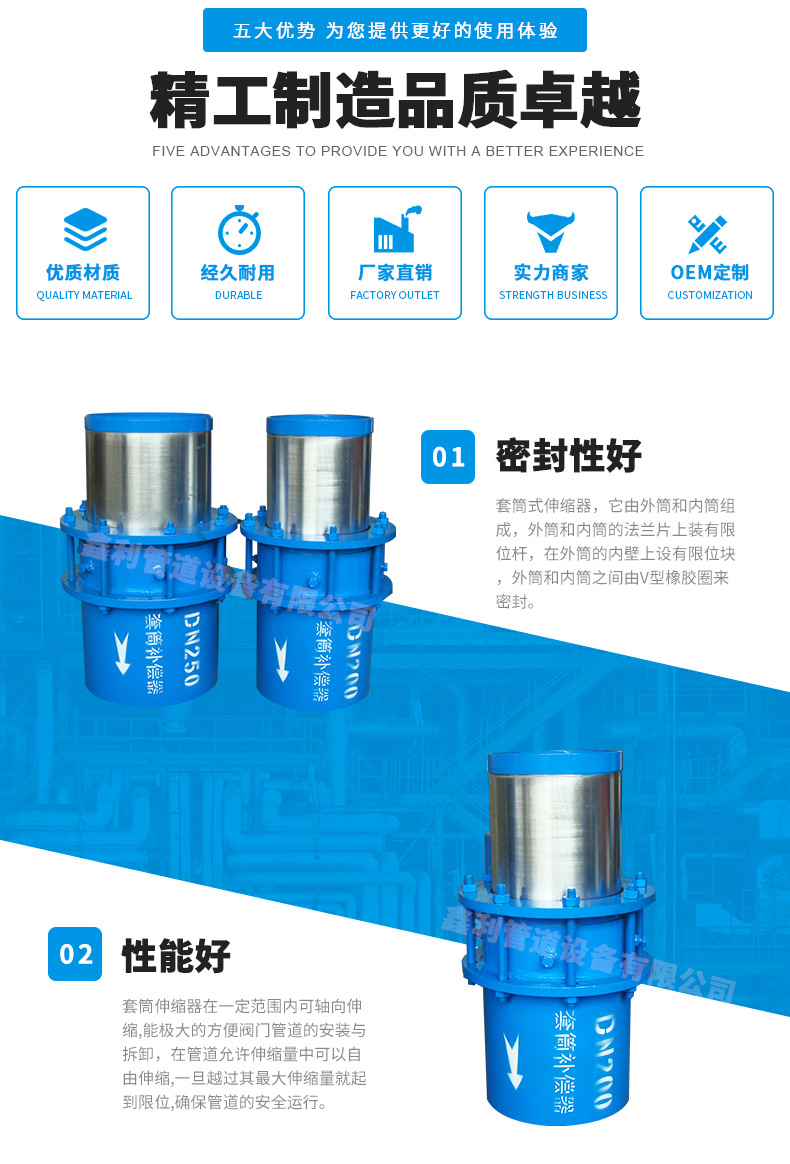 本問幫您解讀套筒補(bǔ)償器如何進(jìn)行分段補(bǔ)償,我公司伸縮器、補(bǔ)償器、傳力接頭、伸縮接頭、膨脹節(jié)等產(chǎn)品嚴(yán)格按照標(biāo)準(zhǔn)設(shè)計(jì)生產(chǎn),特殊規(guī)格型號(hào)可按用戶需要和要求訂做。質(zhì)量?jī)?yōu)選,信譽(yù)至上,為用戶所想,為用戶所急,真誠(chéng)熱心,以心換心是鑫利人的服務(wù)宗旨。官網(wǎng):/,官方熱線:400-6596-356